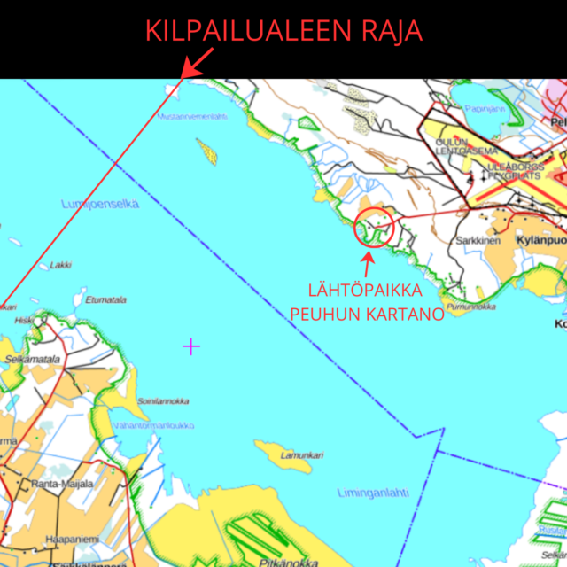 - Kilpailualue: Liminganlahti kotakarille asti (esitetty kartalla)